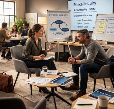 Ethical Inquiry is a two-day, practice-focused training that integrates theory, structured questioning, and professional positioning to support practitioners in engaging men who use domestic violence, while keeping accountability and safety central in any intervention setting.